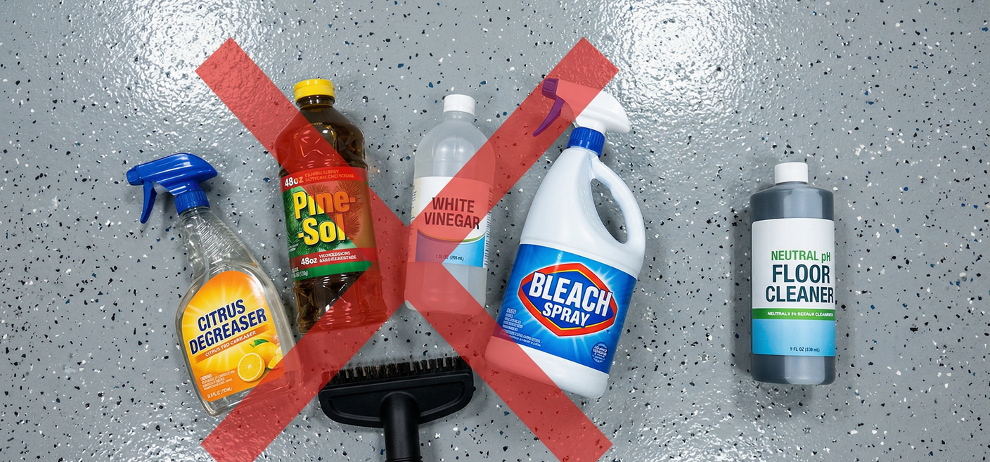 Here's what many Tampa Bay homeowners assume: any all-purpose cleaner from the hardware store is safe for epoxy. It isn't. Citrus-based degreasers, bleach, and multi-surface sprays will slowly degrade an epoxy or polyaspartic topcoat. Though the damage won’t happen with a single use, you can count on it over a season. Garage floors in Hillsborough, Pinellas, and Manatee counties have one more variable working against them: Florida's year-round climate means those threats show up more frequently than in seasonal climates, with no winter break to slow the damage.