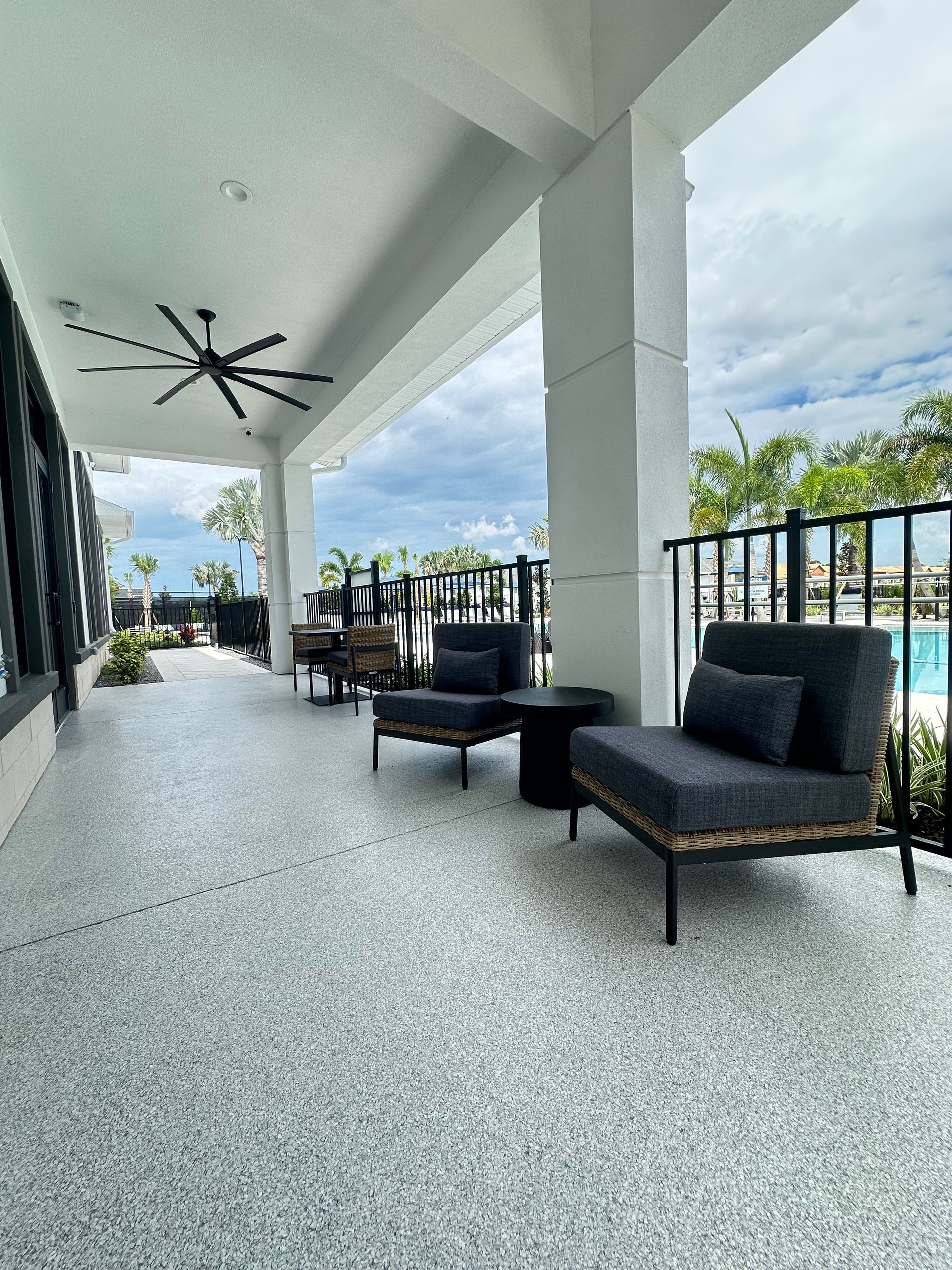 The Professional Solution: We use high-quality, industrial-grade epoxy or polyaspartic systems. These materials are significantly thicker, more durable, and formulated to resist hot tire pickup, chemicals, and UV damage. While they’re more UV-stable than typical DIY products, prolonged exposure to direct sunlight can still affect some finishes over time.